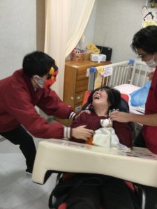 今年は各病棟とも大勢でホールに集まることを避け、お部屋をまわり行われました。