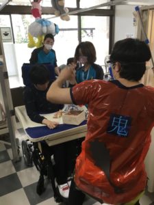 元気な鬼達が賑やかに病棟を練り歩き