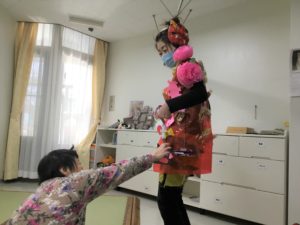 鬼の服にはお菓子がくっついていてご利用者には楽しい美味しい時間になりました。
