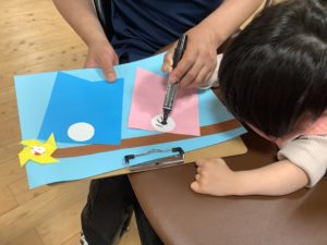 まつ毛をつけると何だかご利用者に似て可愛いこいのぼりになりそうです。