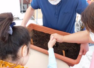 植えた方がわかるように、種の前に名前のプレートを刺して、たっぷりとお水をあげたら完成です。