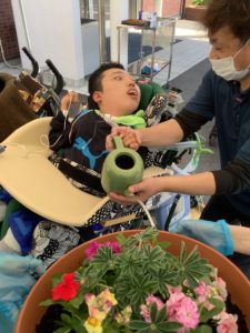 ご利用者に好きな花を選んでもらい、お花の配置をデザインをしてもらいます。