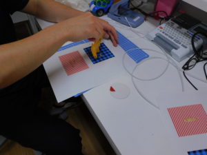 柄が決まったら、次は色のついた見本を見てイメージを確認します。