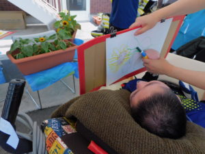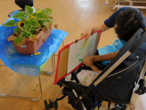 ランドでは7月の第1週目にひまわりの写生を行いました。