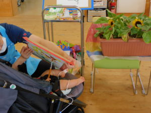ランドでは満開のひまわりが明るくご利用者を見守ってくれています。