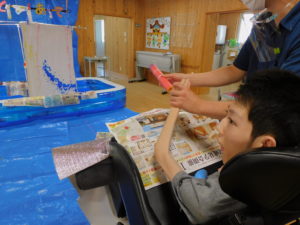 ランドでは8月の第4週に水鉄砲遊びをしました。(8/25取材)
