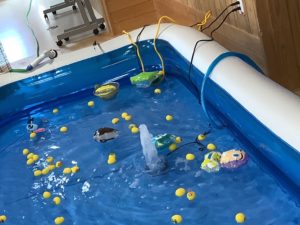 今年はただ浮かべるのではなく、水流モーターを使ってヨーヨーがプールの中をグルグル周るようにしました。