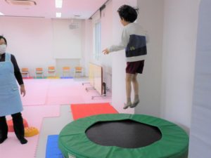 次は大好きなトランポリン。勢いよくジャンプすると、生き生きとした子どもたちの表情を見ることができました。