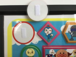 形だけで合わせる事ができる子どもさんにはこちらをプレゼント。こちらの裏はマジックテープにしました。