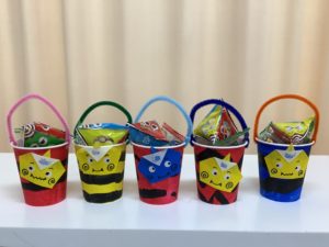 前の週、ご利用者が作られたカップに豆を入れて、お土産にしましたよ。