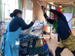 別の日には、節分のお話しと「桃太郎」をアレンジした劇がありました。