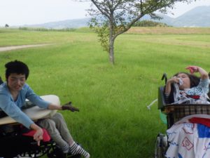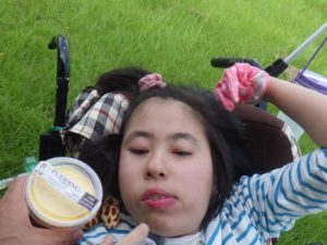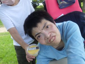 途中でご利用者の好きなスイーツを買って、緑に囲まれた気持ちのいい場所で食べました。