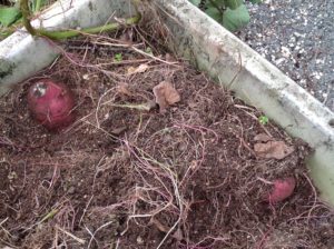 つるを引っ張ったり、土を掘ってみるとお芋の姿が見えてきました。