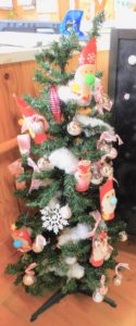 ひとつずつパーツを糊付けするとかわいいサンタさんが出来上がりました。クリスマスツリーに飾り、病棟を華やかにしてくれています。