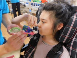 スプレーでジュースを味わったり、甘い香りのペーストに笑顔になられたり、栗のアイスクリームが美味しくてあっという間に完食されたりと