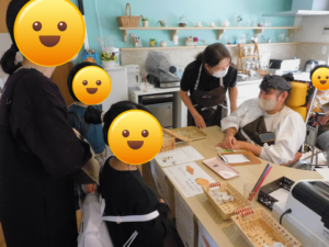 カフェにはご利用者が作られたオブジェや絵画の展示、クッキーや髪飾りなどの販売コーナーもあり、活動を知っていただける良い機会にもなりました。