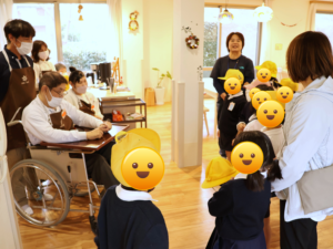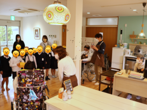 入り口で元気なご挨拶をいただき、ご利用者からは笑顔がこぼれました。