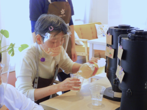 HANA CAFEは、様々な障害を持った方々が自分なりの力を生かし頑張って、挽きたてのコーヒーやジュースなどを無料で提供しています。