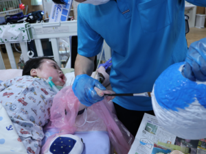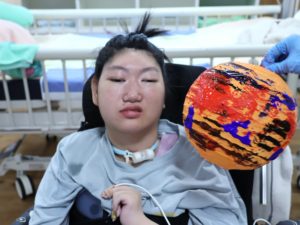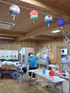 提灯の色やデザインを職員と相談し、絵具で色付けをしました。