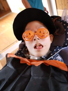 カチューシャやマントなどで、好きな仮装を楽しんでお菓子をもらいに行きました。