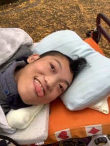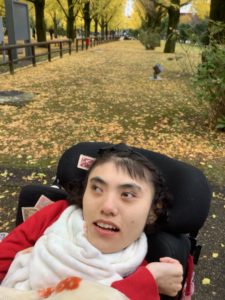 県庁のイチョウ並木で、記念撮影をしたり、葉っぱを拾ったりして秋を満喫しました。