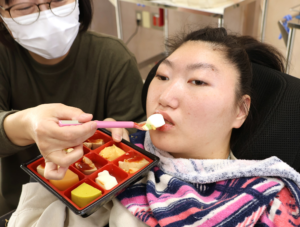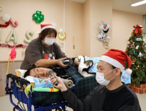 大きなクリスマスケーキやサンタさんからのプレゼントなど、ご利用者からたくさんの笑顔がみられました。
