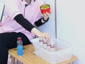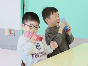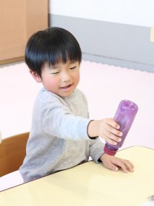 いよいよ子どもたちの番です。先生が、ペットボトルに魔法の粉を入れると、子どもたちはドキドキワクワク!
