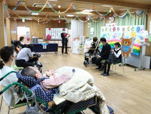 卒園児さんのランドでの歩みをスライドショーで流し、登園をはじめた頃から卒園の日までの成長された姿をみて、