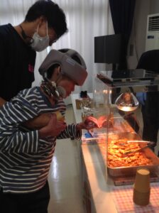 【2病棟】ホールでは、やきとりやスムージーを味わっていただきました。お菓子すくいにも挑戦し大いに盛り上がりました。