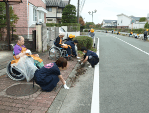 今回は、町内会の清掃活動に参加し、地域の皆様とともに歩道の清掃を行いました。