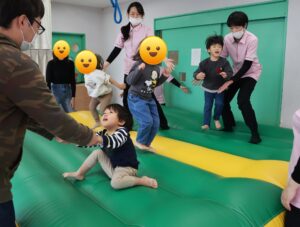 転んでも痛くないので、思い切り体を動かしながら楽しんでいました。