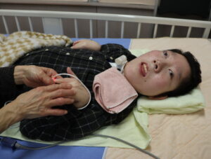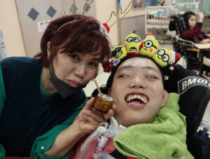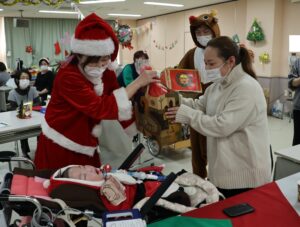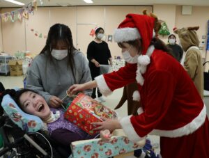 サンタさんからプレゼントを渡されると、ご利用者から素敵な笑顔がこぼれました。