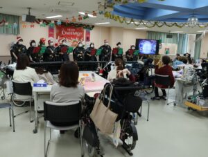 次は職員による「トーンチャイム」の演奏です。優しい音色が室内に響き渡り、穏やかで温かいひとときとなりました。