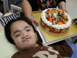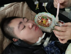 ご利用者のお顔より大きなクリスマスケーキも登場し、食後のデザートに美味しくいただきました。