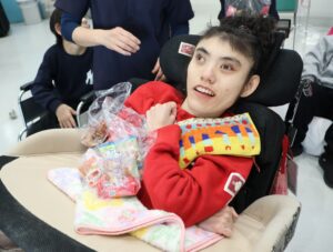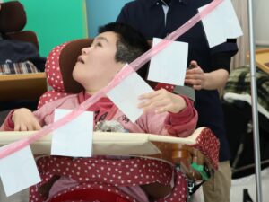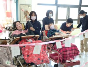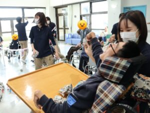 最初は少し緊張気味だったご利用者も、鬼に豆が当たるとパッと笑顔になり、厄払いを楽しむことができました。