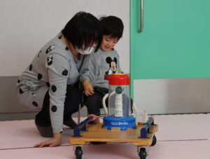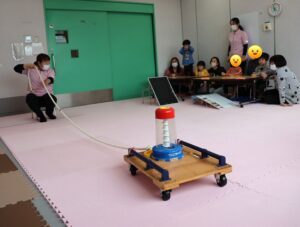 2回目は台車に重りを乗せて「重さ」をプラス。少し手応えが増しましたが、みんな一生懸命に手を動かし、