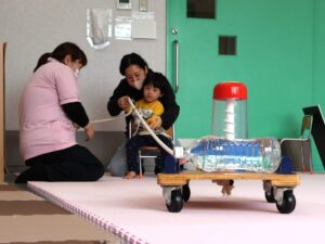 こうした活動を通じ、手を交互に動かす協調運動や、重さに合わせて踏ん張るなどの力加減を学んでいきます。